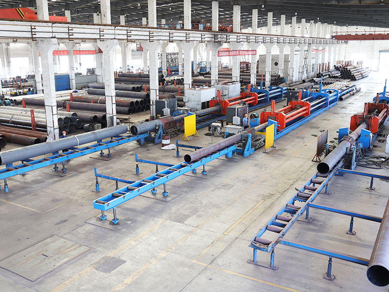 熱擴(kuò)生產(chǎn)線:擁有熱擴(kuò)機(jī)組6套,配備了自動化程度較高的液壓推進(jìn)熱擴(kuò)機(jī)、箱式熱處理爐,以及內(nèi)、外拋丸/磨光、液壓矯直、坡口等設(shè)備,年產(chǎn)Φ356-1420mm的大口徑無縫鋼管6萬余噸。該生產(chǎn)線配備了自動化程度較高的熱擴(kuò)、熱處理設(shè)備,無損探傷、水壓、理化檢測設(shè)備以及內(nèi)、外拋丸/磨光、坡口等設(shè)備,嚴(yán)格按國內(nèi)外各類標(biāo)準(zhǔn)、技術(shù)協(xié)議生產(chǎn)高鋼級、高品質(zhì)的大口徑無縫鋼管,并可按客戶要求提供九國船級社檢驗、第三方檢驗等服務(wù)。