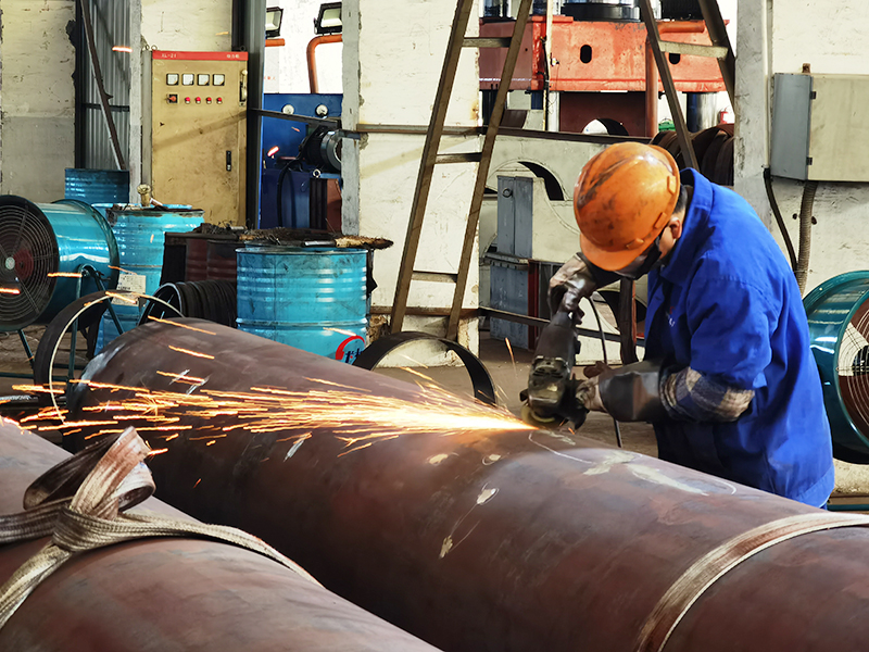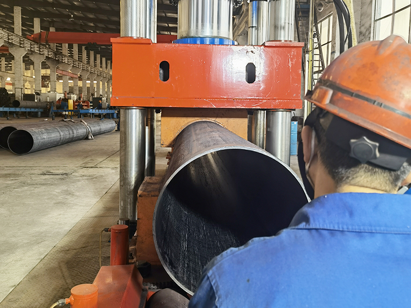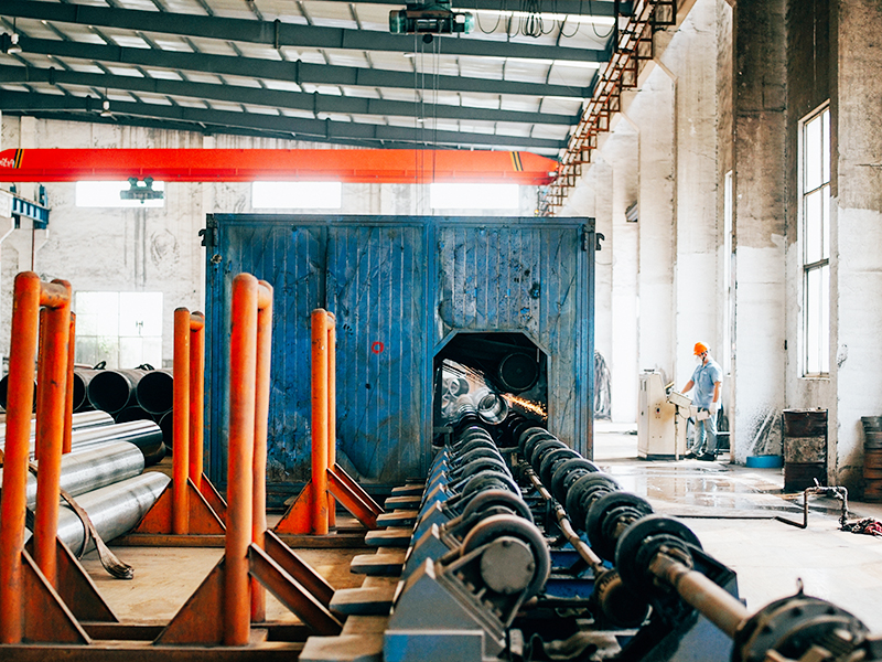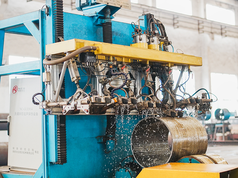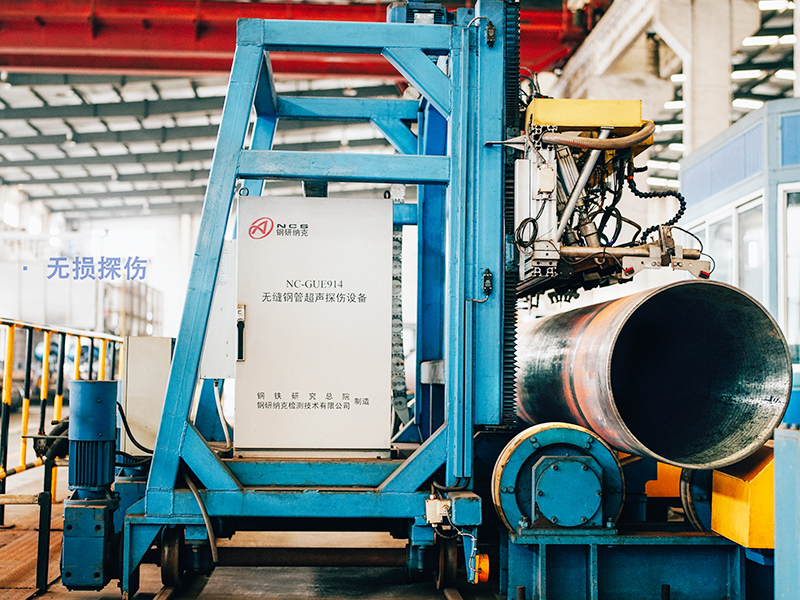 熱擴(kuò)生產(chǎn)線:擁有熱擴(kuò)機(jī)組6套,配備了自動(dòng)化程度較高的液壓推進(jìn)熱擴(kuò)機(jī)、箱式熱處理爐,以及內(nèi)、外拋丸/磨光、液壓矯直、坡口等設(shè)備,年產(chǎn)Φ356-1420mm的大口徑無縫鋼管6萬余噸。該生產(chǎn)線配備了自動(dòng)化程度較高的熱擴(kuò)、熱處理設(shè)備,無損探傷、水壓、理化檢測(cè)設(shè)備以及內(nèi)、外拋丸/磨光、坡口等設(shè)備,嚴(yán)格按國(guó)內(nèi)外各類標(biāo)準(zhǔn)、技術(shù)協(xié)議生產(chǎn)高鋼級(jí)、高品質(zhì)的大口徑無縫鋼管,并可按客戶要求提供九國(guó)船級(jí)社檢驗(yàn)、第三方檢驗(yàn)等服務(wù)。
